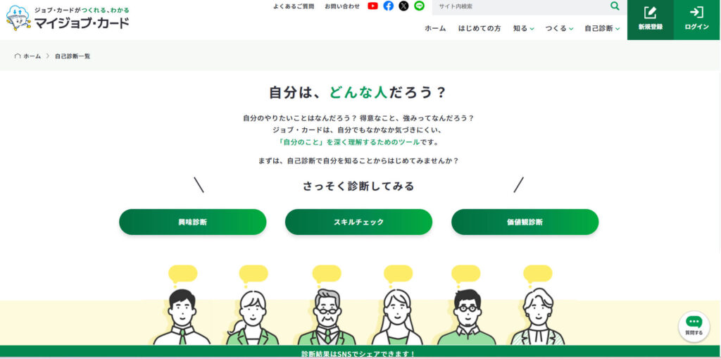 例えば、厚生労働省が公開している「マイジョブ・カード」内の価値観診断は、スマホやPCから簡単にできて、自己理解を深めるツールとして非常に有用です。